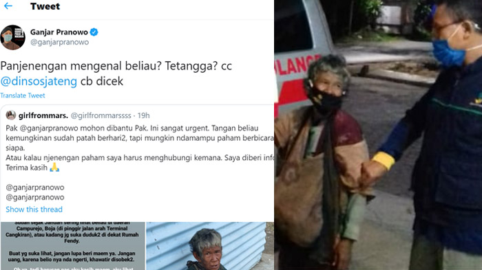 Gubernur Jawa Tengah Ganjar Pranowo merespons cepat aduan netizen tentang tunawisma yang alami patah tulang. Dinsos langsung menindaklanjuti.