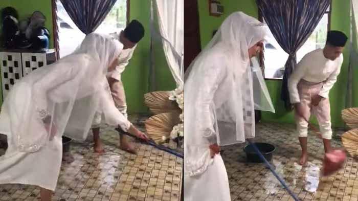 VIRAL Aksi Pengantin Kompak Sapu Banjir saat Nikah, Lihat Ending, 'Tak Tahu Mau Nangis Atau Tertawa'