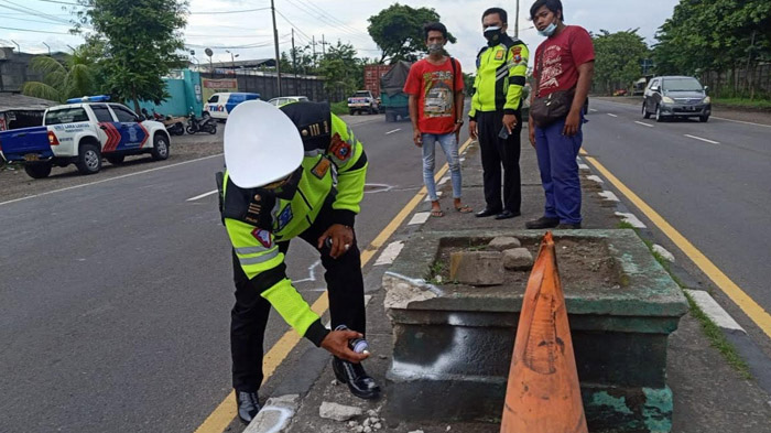 "Korban mendahului dari kanan. Nah, saat mendahului itu sepeda motor menyenggol pembatas jalan," kata Kapolsek Krian, AKP Mukhlason.