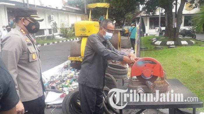 TRIBUNJATIM.COM, BONDOWOSO - Polres Bondowoso memusnahkan barang bukti hasil giat cipta kondisi selama sebulan terakhir.