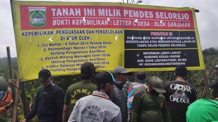 Terbaru, sebuah papan bertuliskan "Tanah Ini Milik Pemdes Selorejo" terpasang di salah satu lahan perkebunan jeruk yang juga termasuk wilayah Kecamatan Dau itu.