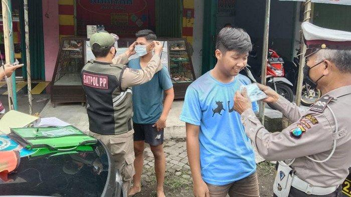 Ada lima pelanggar yang diberikan sanksi berupa denda mengganti masker sebanyak 20 buah.