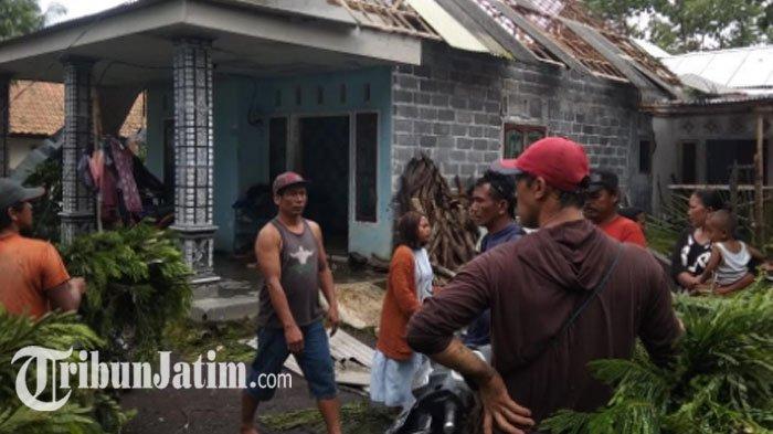 TRIBUNJATIM.COM, LUMAJANG - Angin puting beliung terjadi di Kecamatan Pasrujambe, Lumajang, Selasa (26/1/2021). Akibatnya puluhan rumah rusak berat.