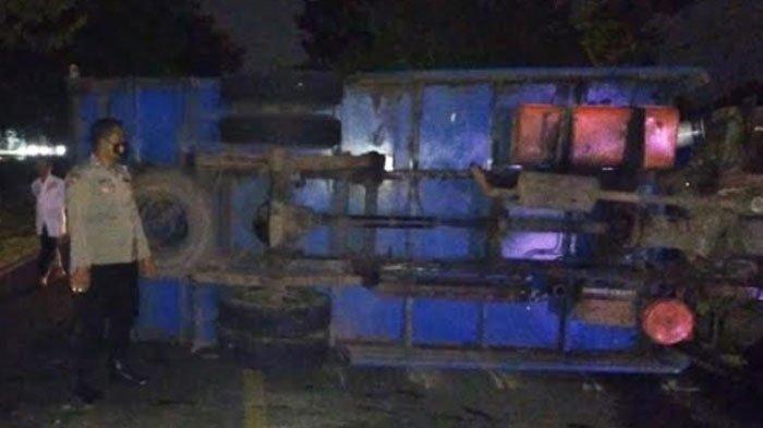 Insiden truk garam terguling itu terjadi sekitar pukul 00.20 WIB.