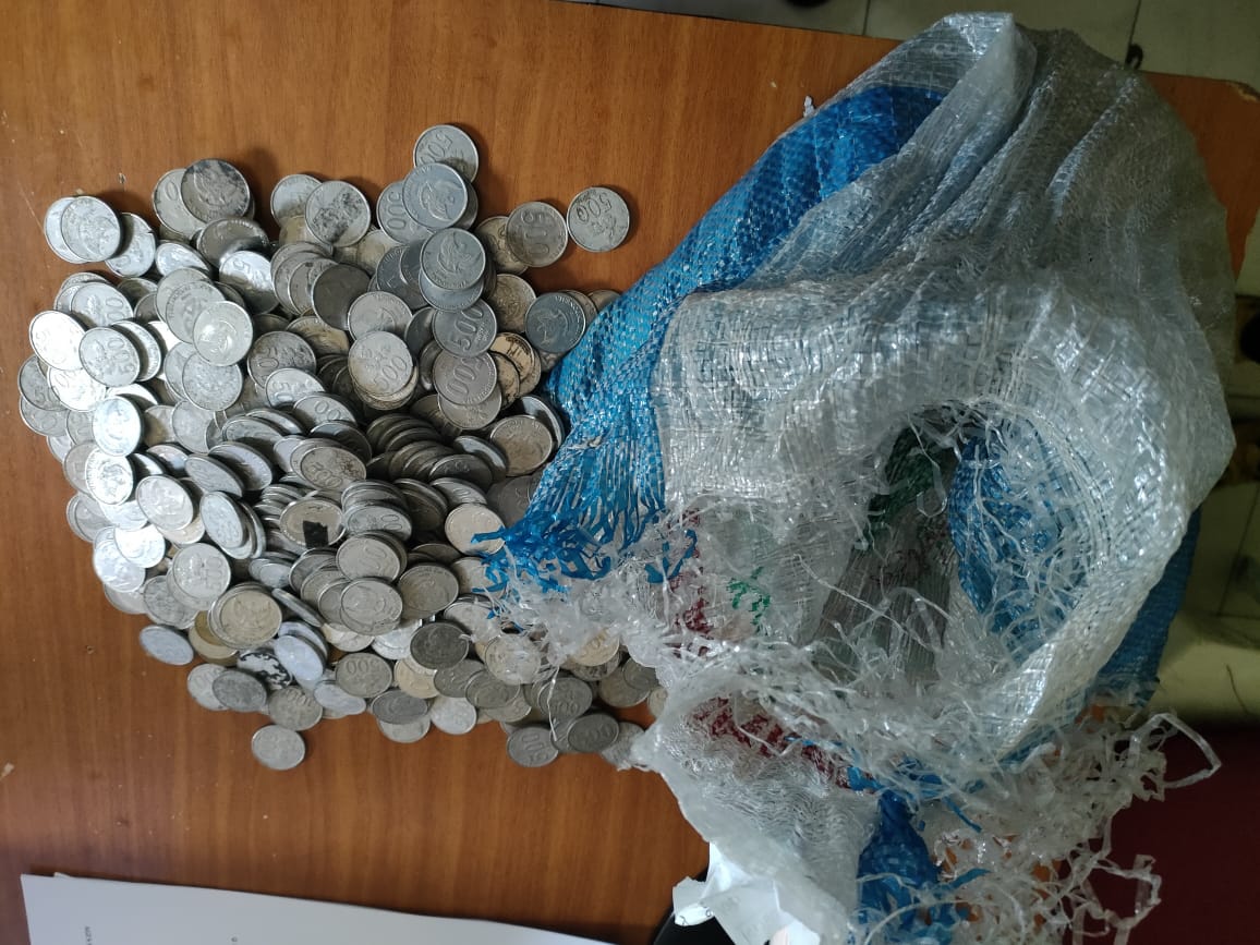 Dengan nada meyakinkan,uang receh yang dikemas dalam sebuah karung besar itu diserahkan ke kasir bernama Laila Mustikasari (22).