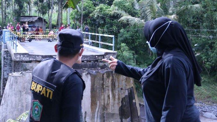 TRIBUNJATIM.COM, LUMAJANG - Pasca Jembatan di Desa Gesang, Kecamatan Tempeh, Kabupaten LUmajang, Jawa Timur terputus, Bupati Lumajang meninjau lokasi itu.