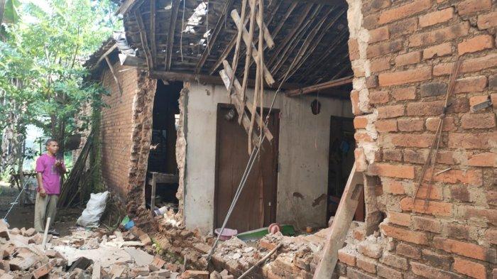 Sebuah rumah di Jalan Gadung Melati, Desa Siman, Kecamatan Siman, Ponorogo mengalami kerusakan parah akibat gempa bumi yang mengguncang Ponorogo