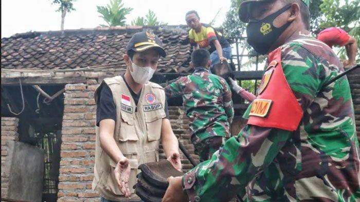 Di rumah Sudarmi (69) di Desa Ngadisuko, Kecamatan Durenan, Syah sempat turut membantu perbaikan rumah bersama warga.