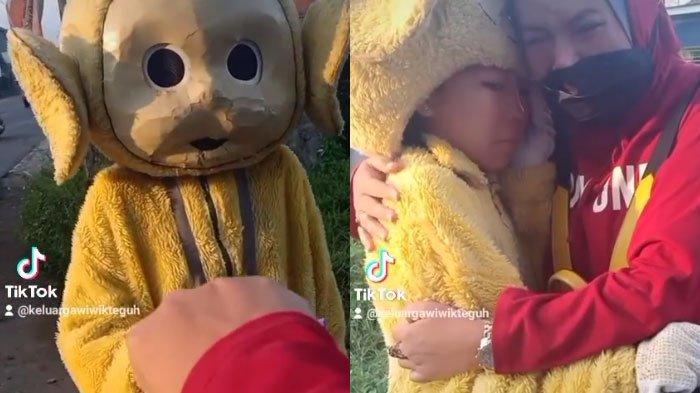 Dalam video tersebut, tampak seseorang bocah menggunakan kostum badut karakter Teletubbies.