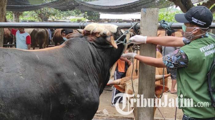 TRIBUNJATIM.COM, BLITAR - Tim Bidang Peternakan Dinas Ketahanan Pangan dan Pertanian Kota Blitar menemukan sejumlah sapi belum cukup umur untuk hewan kurban di Pasar Hewan Dimoro Kota Blitar, Jumat (16/7/2021).