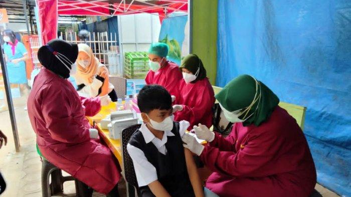 Penerima vaksin, Beylla Eka Kirana usia (15) mengatakan, saat divaksin merasa takut dan gemetar.