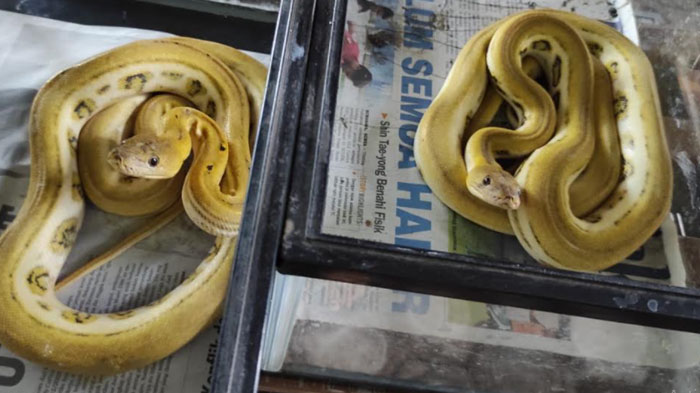 Namun barang yang diambil dua orang ini sungguh tak lazim, yaitu 15 ekor ular jenis piton.