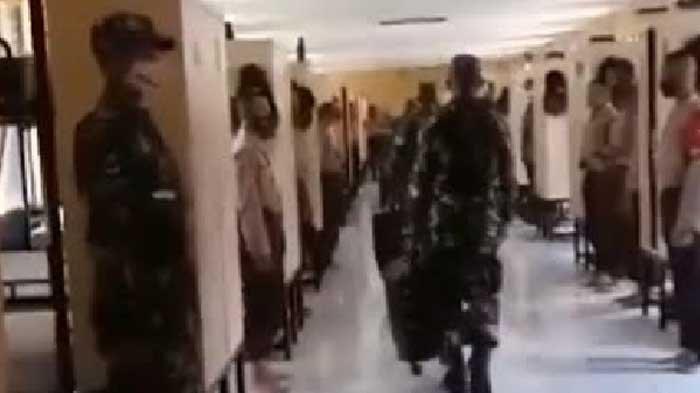 Kemudian pada bagian lain video, tampak seorang anggota Polri berseragam pakaian dinas luar (PDL) yang diduga kuat bertindak sebagai pimpinan di dalam ruangan barak tersebut, tampak melakukan proses pemanggilan nama untuk kepentingan absensi.
