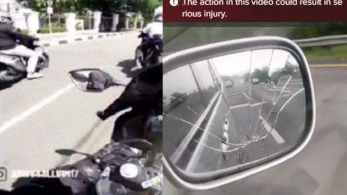 Video tersebut menunjukkan kaca spion yang mendadak rusak tepat setelah rombongan presiden lewat.
