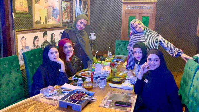Mulan Jameela terlihat asyik bercengkrama bersama Mamah Dedeh dan rekan lainnya.