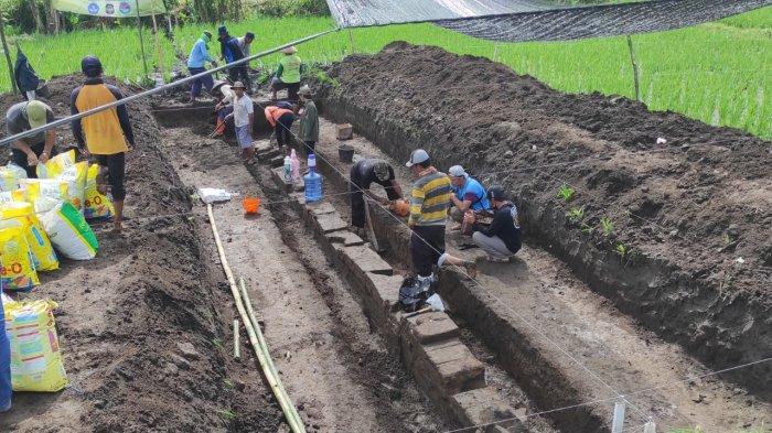 TRIBUNJATIM.COM, BLITAR - Tim BPCB Jatim berhasil menampakkan struktur bata sepanjang lebih kurang 14 meter pada hari keempat ekskavasi penyelamatan situs Karangtengah, Kecamatan Sananwetan, Kota Blitar, Kamis (10/2/2022).