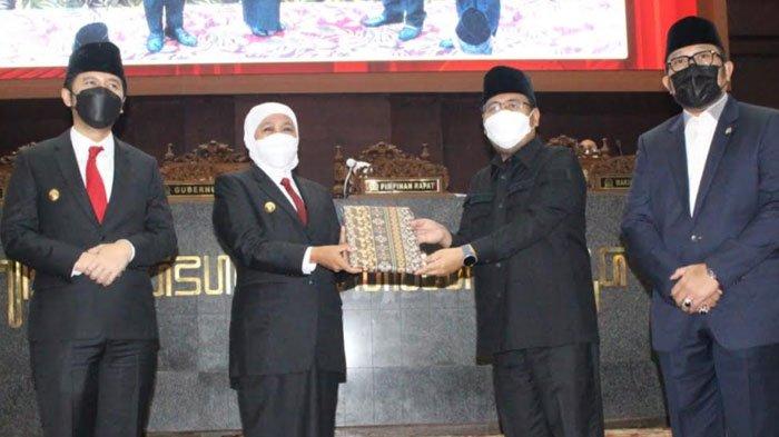 Rapat paripurna itu dihadiri langsung oleh Gubernur Jatim Khofifah Indar Parawansa dan Wagub Emil Elestianto Dardak serta jajaran Pemprov.