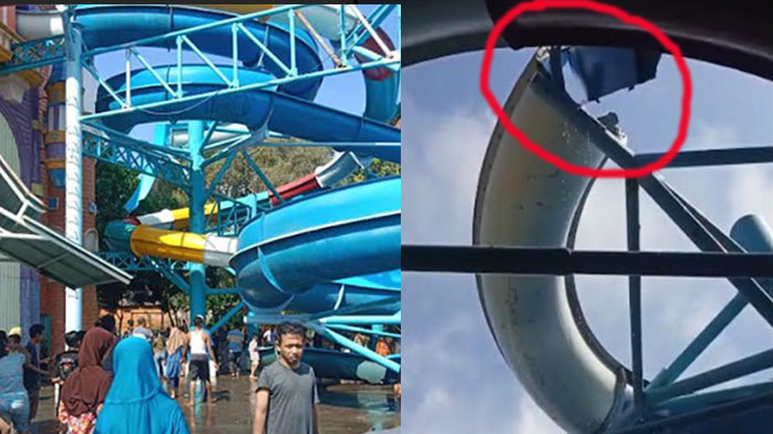 Tak pelak, membuat komponen seluncuran kolam renang yang berada di ketinggian sekitar delapan meter itu, patah.