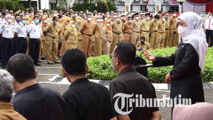 TRIBUNJATIM.COM, SURABAYA - Gubernur Jawa Timur, Khofifah Indar Parawansa meminta para aparatur sipil negara (ASN) untuk semakin peka dengan persoalan yang ada di masyarakat.