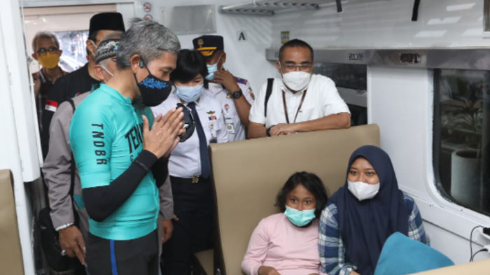 Sekda didampingi Ketua Badan Amil Zakat Nasional (Baznas) Jateng KH Ahmad Darodji, Kepala Dinas Perhubungan Jateng Henggar Budi Anggoro, Kepala Daop IV Semarang, serta pejabat terkait lain berkeliling gerbong untuk mengecek kesiapan pemberangkatan sekaligus berbincang dengan sejumlah penumpang.