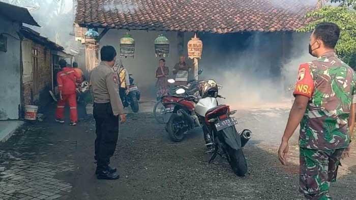 TRIBUNJATIM.COM, NGANJUK - Bhabinkamtibmas, Babinsa, dan pemdes setiap desa di Kabupaten Nganjuk melakukan antisipasi penyebaran Demam Berdarah Dengue (DBD), yakni dengan memberikan imbauan menjaga kebersihan lingkungan dan melakukan penyemprotan (fogging) sarang nyamuk aedes aegypti.