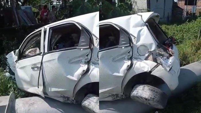 TRIBUNJATIM.COM, LAMONGAN - Mobil Honda Brio tertabrak kereta api di perlintasan tanpa palang pintu Desa Bulutrate, Kecamatan Babat, Lamongan, Rabu (20/7/2022).