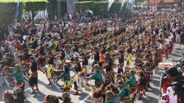 Sebanyak 1.050 seniman jaranan dan pengrawit datang dari berbagai desa di Jawa Tengah. Mereka tampil memesona dan berhasil menyihir warga yang asyik mengikuti Car Free Day (CFD) di kawasan itu. Pertunjukan yang tak biasa tersebut sontak membuat ribuan masyarakat menghentikan aktifitas CFD dan mengabadikan moment itu dengan kamera masing-masing.