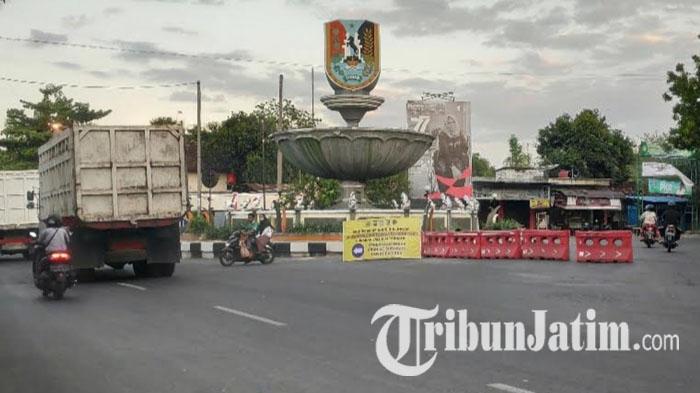 Imbauan berupa banner pengumuman pengalihan arus lalu lintas terpasang di pertigaan Manunggal Utara Tuban.
