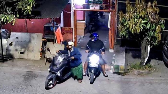 Jelang Subuh, wanita di Surabaya salat sunnah, dengar suara glodak, ternyata motor suami raib digondol maling. Aksi pelaku terekam CCTV.