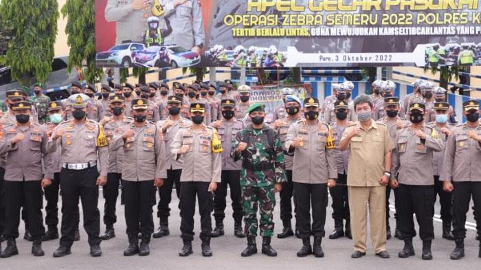 TRIBUNJATIM.COM, KEDIRI - Polres Kediri menggelar apel gelar pasukan dalam rangka Operasi Zebra Semeru 2022 di halaman Mapolres Kediri, Senin (3/10/2022).
