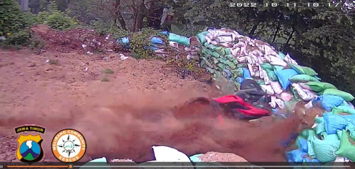 Dari rekaman CCTV terlihat sepeda motor Vario warna merah menabrak kencang sekam di jalur penyelamat tersebut.