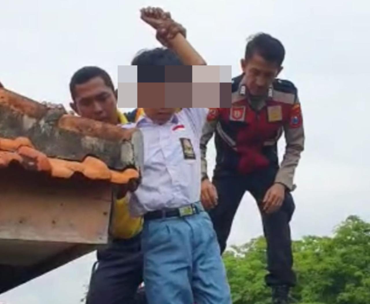 Perlakuan siswa kelas X itu membuat heboh guru dan temannya karena murung sembari duduk di atas pucuk genting sekolahnya di lantai dua, Rabu (19/10/2022) kemarin.