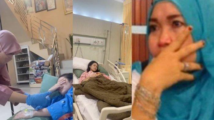 Pedangdut 30 tahun itu tampak begitu pucat dan lemah dengan tangan terpasang selang infus.