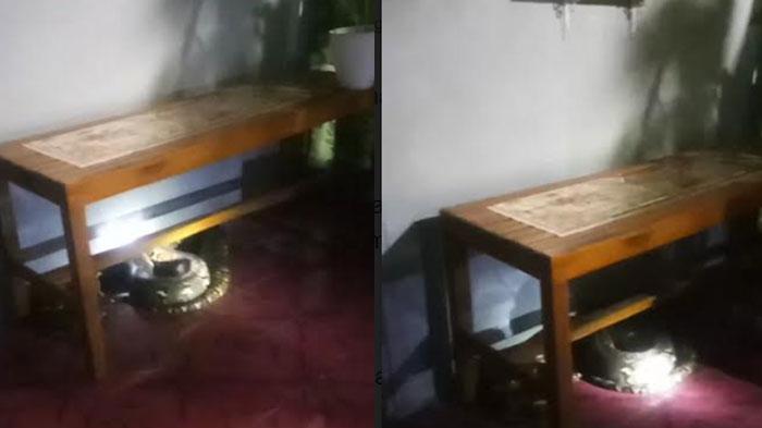 Ular Piton Bikin Geger Warga Gresik, Sembunyi di Bawah Meja Teras, Diduga Berasal dari Gorong-gorong