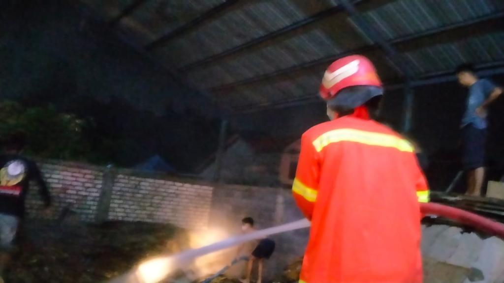 Gudang Kertas di Desa Slempit RT 16/RW 03, Kecamatan Kedamean Kabupaten Gresik pada Rabu (4/1/2023) malam. Tumpukan kardus dilalap si jago merah.