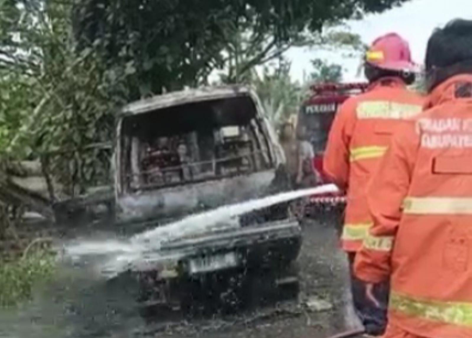 TRIBUNJATIM.COM, GRESIK - Sebuah mobil Suzuki Carry tiba-tiba mogok lalu terbakar.