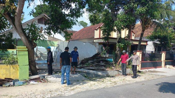 Korban Sutikno (53) tewas seketika tertimpa balok beton cor kunci ring atap bangunan saat sedang membongkar bangunan perumahan sekolah di SDN II Kramat Dsn Ngablak Desa Kramat Lamongan, Sabtu (6/5/2023).