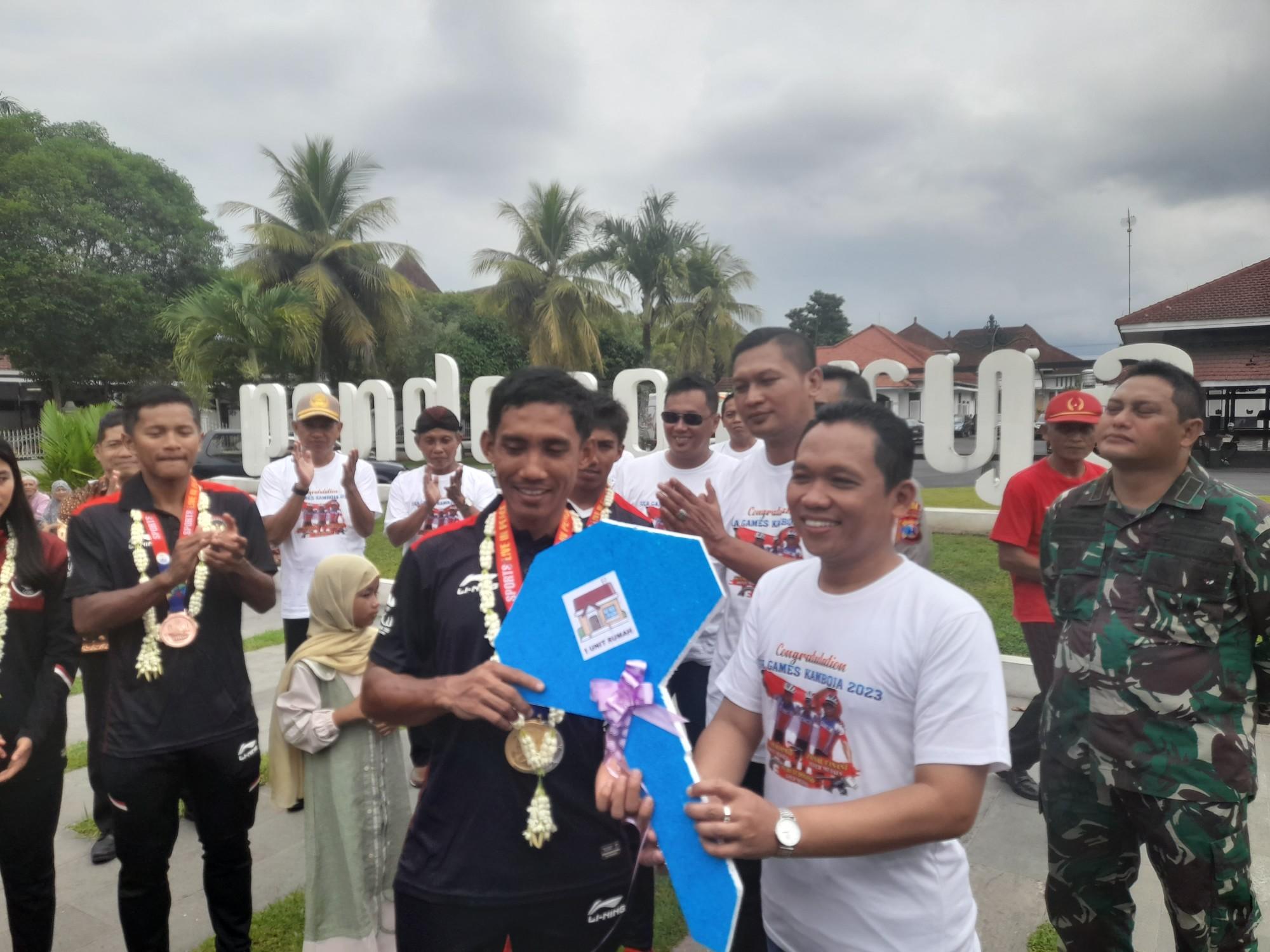 "Hadiah ini sebagai dukungan apresiasi Pemkab Lumajang atas prestasi atlet-atlet kita. Nanti bebas mau pilih rumah di mana di Lumajang," ujar Bupati Lumajang, Thoriqul Haq usai menyambut para atlet di Pendopo Arya Wiraraja Lumajang pada Kamis (11/5/2023).