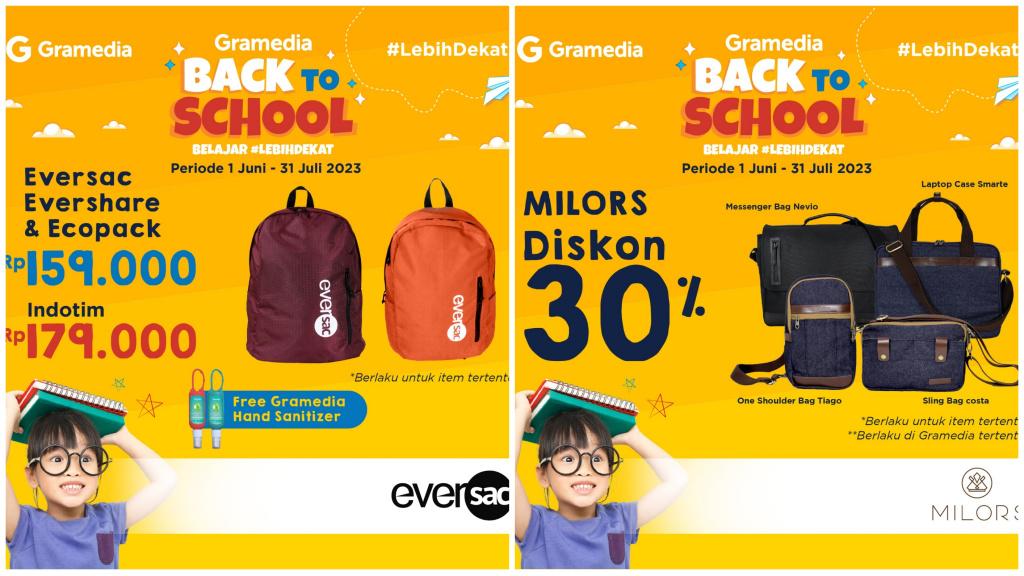 Promo Spesial Eversac dan Milors Sambut Ajaran Baru: 'Gramedia Back To School Belajar Lebih Dekat'