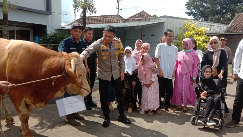 Dan satu diantara sapi kurban Polresta Malang Kota tersebut, diatasnamakan empat anak disabilitas.