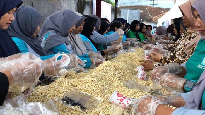 Nampak ibu-ibu dan juga perangkat desa sangat bersemangat mengikuti acara rabuk tempe. Tempe yang disediakan ialah sebanyak 1 kuintal atau 100 kilogram, untuk nantinya dijadikan bahan utama pembuatan mendol atau tempe yang dikepal pada Sabtu (15/7/2023) mendatang, karena tempe baru jadi setelah 2 hari.