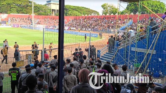 Menjelang akhir babak pertama Persik Kediri vs Arema FC, ada beberapa orang yang diduga merupakan suporter tim tamu ikut menonton di Stadion Brawijaya Kediri.