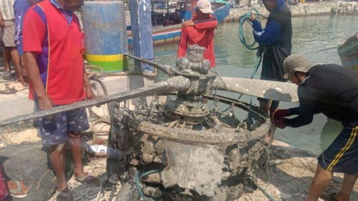 TRIBUNJATIM.COM, GRESIK - Nelayan Desa Campurejo, Kecamatan Panceng, Kabupaten Gresik menemukan mesin dan baling-baling pesawat saat mencari ikan.