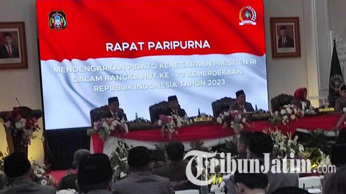 TRIBUNJATIM.COM, BLITAR - DPRD Kota Blitar menggelar Rapat Paripurna Mendengarkan Pidato Kenegaraan Presiden RI dalam rangka HUT Kemerdekaan RI ke-78, Rabu (16/8/2023).