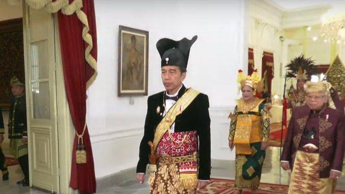 TRIBUNJATIM.COM - Presiden Joko Widodo mengenakan baju adat Ageman Songkok Singkepan Ageng dalam upacara peringatan HUT ke-78 RI, Kamis (17/8/2023).