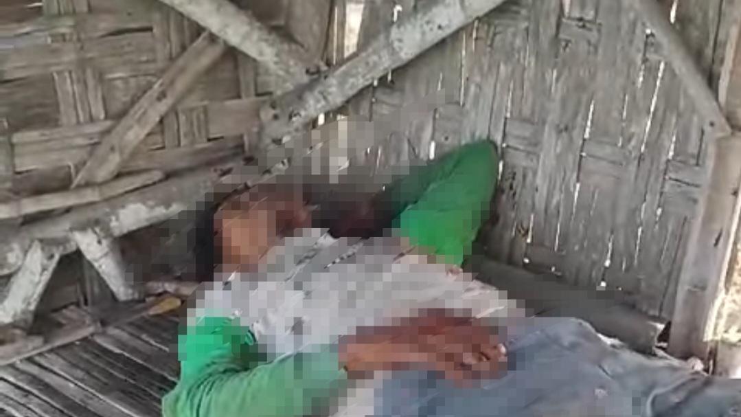 Jasad pria ditemukan berada di atas gubug area persawahan. Masih mengenakan pakaian lengkap. Kaos lengan panjang, celana pendek. Ditemukan luka sayatan di tangan. Kemudian juga arit.