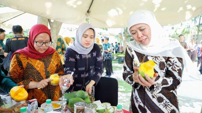 Memasuki musim buah mangga, Gubernur Jawa Timur Khofifah Indar Parawansa tak mau ketinggalan untuk menikmati manis dan segarnya buah dari wilayah trop