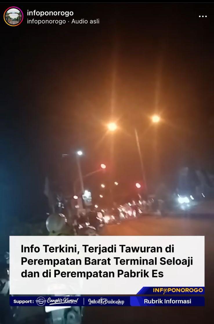 Postingan tersebut berisi informasi tentang bentrokan. Admin @infoponorogo mengupload sebuah video.