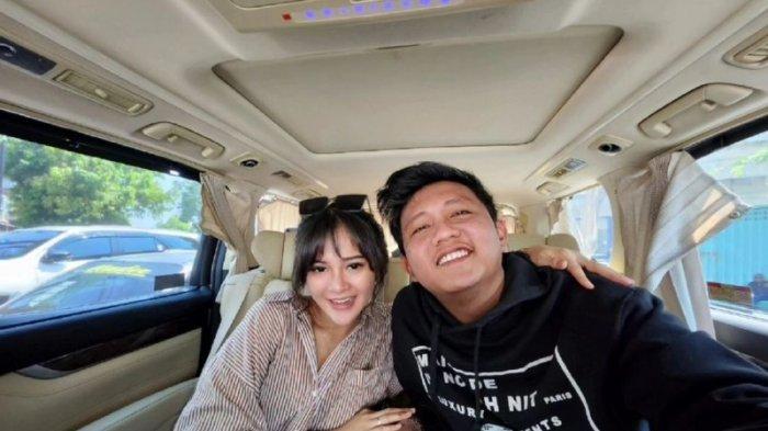 Di sebelahnya, Denny Caknan pun tak mau kalah dengan istrinya yang tersenyum bahagia.