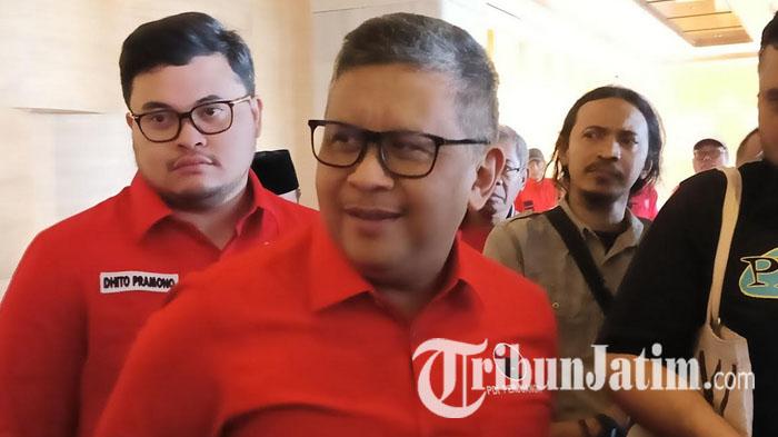 TRIBUNJATIM.COM, SURABAYA - Sekretaris Jenderal PDI Perjuangan (PDIP), Hasto Kristiyanto hanya tersenyum saat dimintai tanggapan mengenai santernya nama putra sulung Presiden Joko Widodo (Jokowi), Gibran Rakabuming Raka sebagai bakal cawapres yang akan mendampingi Prabowo Subianto.